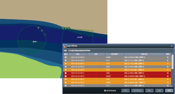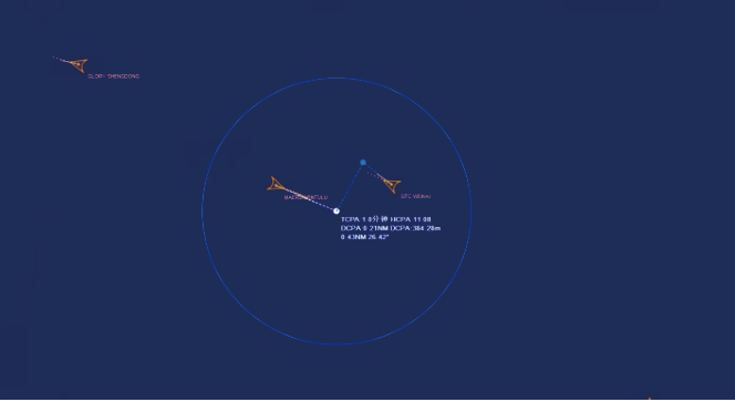船舶避碰监测 通过DCPA和TCPA实时计算,为船舶避碰提前告警,从而保障航行安全。 船舶避碰监测可以在整个系统中或自定义区域内实现。