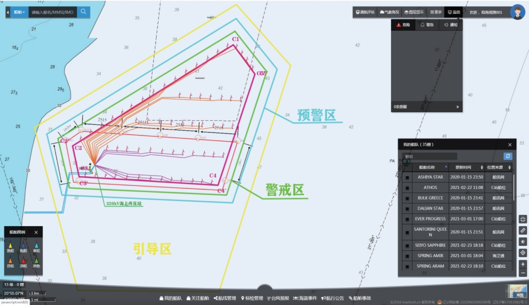 海图、地图、卫星图、融合图,支持个性化海图显控,辅以测量、绘图、标记、通信等基础应用,既满足实时监管,也满足交通分析需要。搭建专业的、先进的海上交通综合性基础服务平台。
