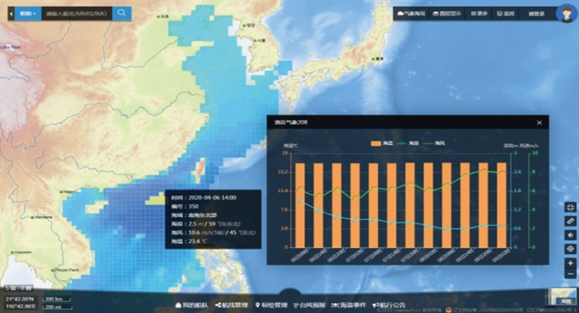 详细的国内海域气象预报: 对于国内海域,平台还提供来自于国家气象部门发布的区域气象预报,如海区气象、渔区气象、港口气象、潮汐预报和卫星云图等;