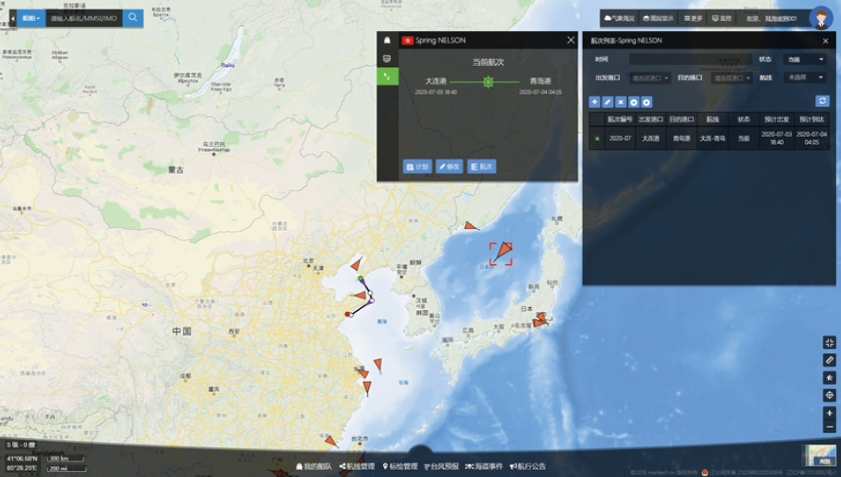 专业化的海图数据应用: 平台提供专业的海图数据应用,与专业的海图系统效果一致,支持海图要素过滤、海图参数设定、光亮模式等个性化设置,实现船岸一体,海图数据提供静态瓦片和动态切片服务,确保海图数据能够及时更新至最新,为船舶航行安全提供数据支持; 多数据源的公司自有船舶动态跟踪: 平台对公司自有船舶可提供多数据源船位服务,确保对船舶动态持续有效的跟踪。船位来源包括全球AIS、C站、远程采集、北斗等;