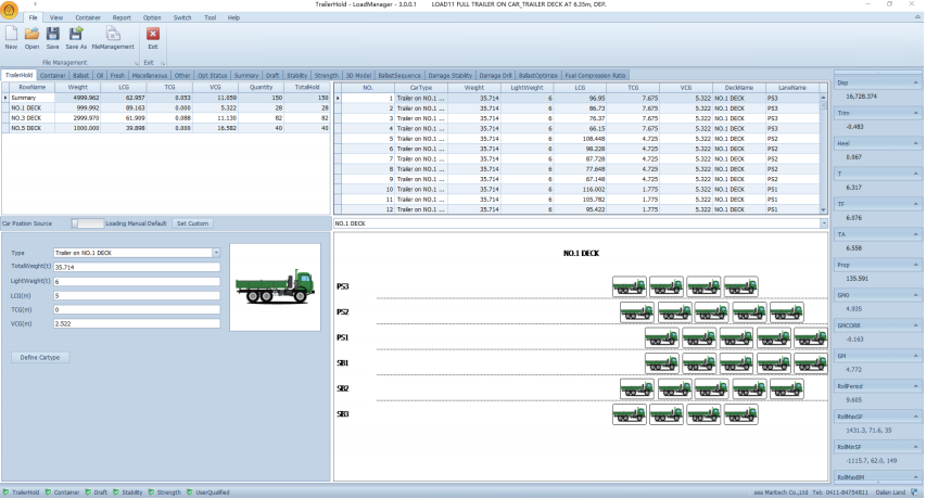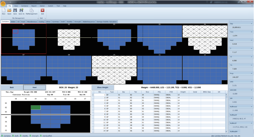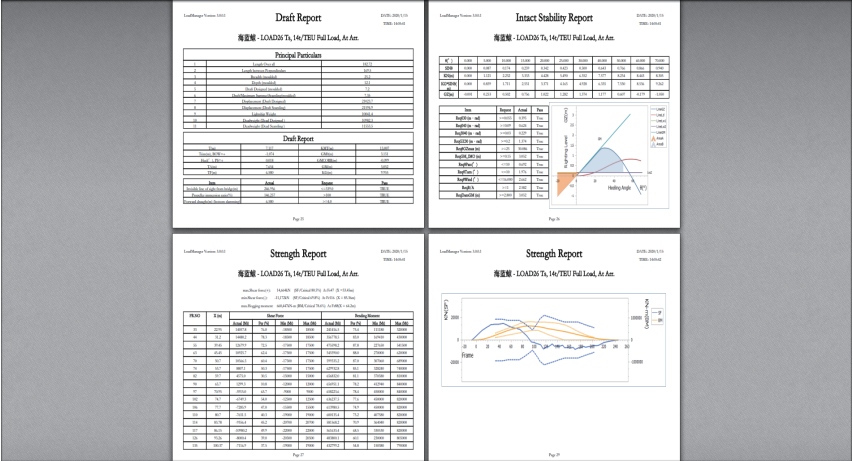 报表管理模块: 丰富的报表处理功能,包括:装载汇总报表、浮态计算报表、稳性计算报表、强度计算报 表、BAYPLAN报表、历史查询统计报表。
